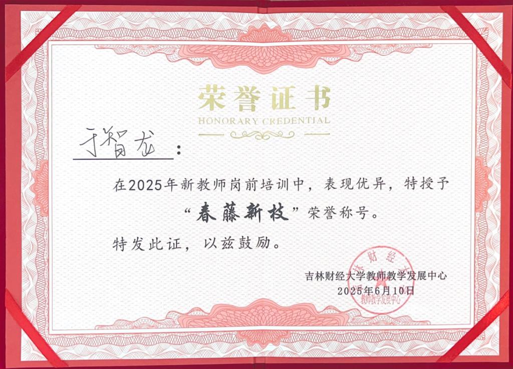 2025年新入职教职工岗前培训结业式于6月10日在创新创业实训中心C202室成功举办,公司新入职教师于智龙博士在基础教学能力考核中脱颖而出,荣获公司颁发的“春藤新枝”奖。 此次结业式上,公司党委副书记、董事长马秀颖以“秉持‘三正’教风争做时代‘大先生’”为主题发表致辞,深刻阐释了吉财人79年来坚守育人初心的使命担当,并对新入职教师提出“正己、正学、正人”的教风要求,鼓励大家共树吉财愿景。此后,公司对在新入职...