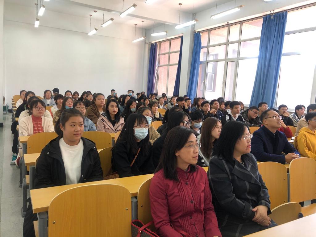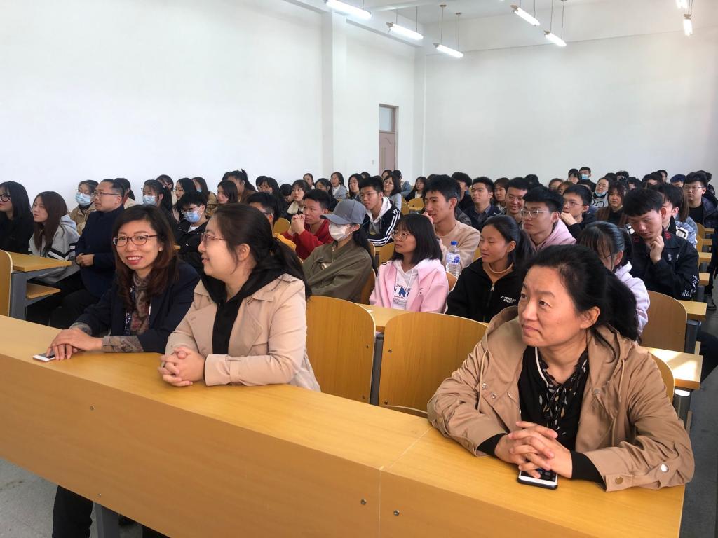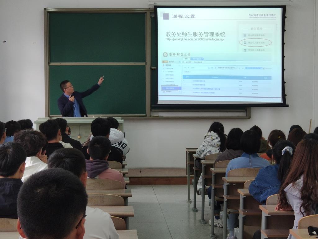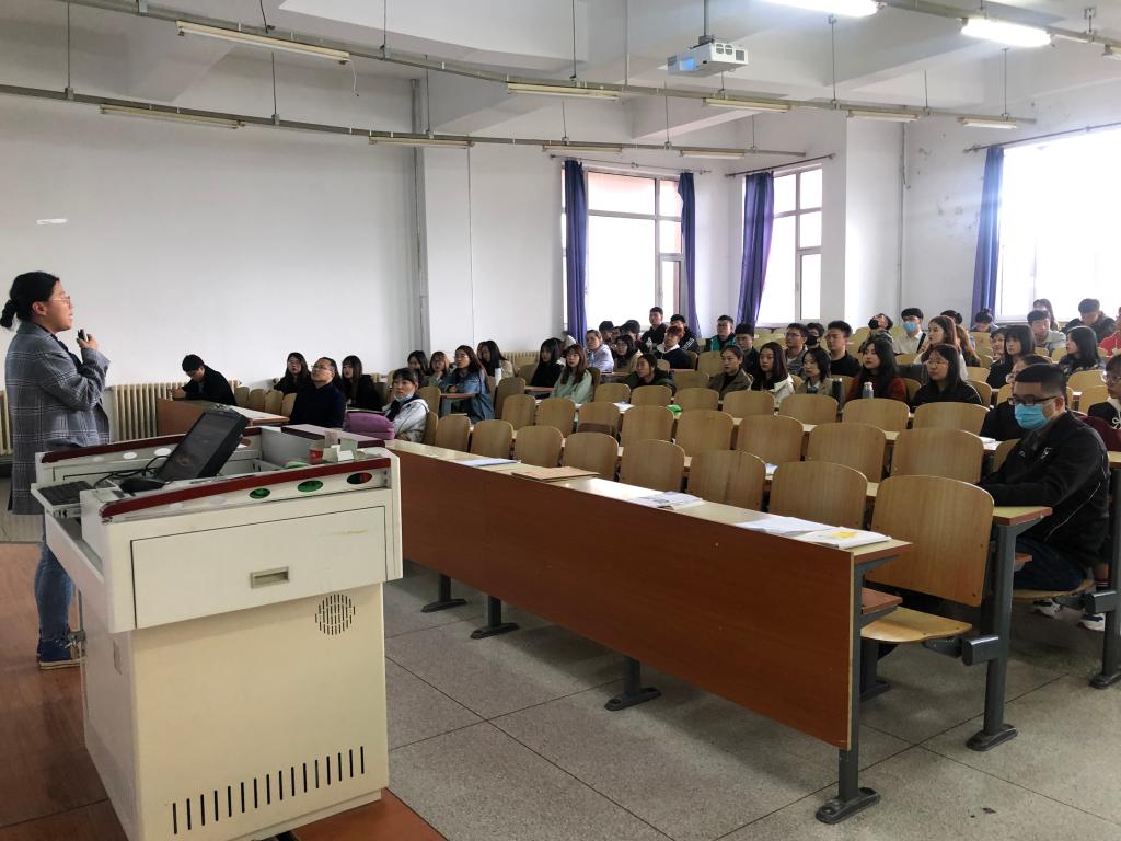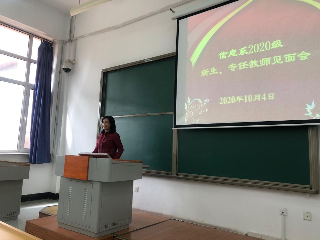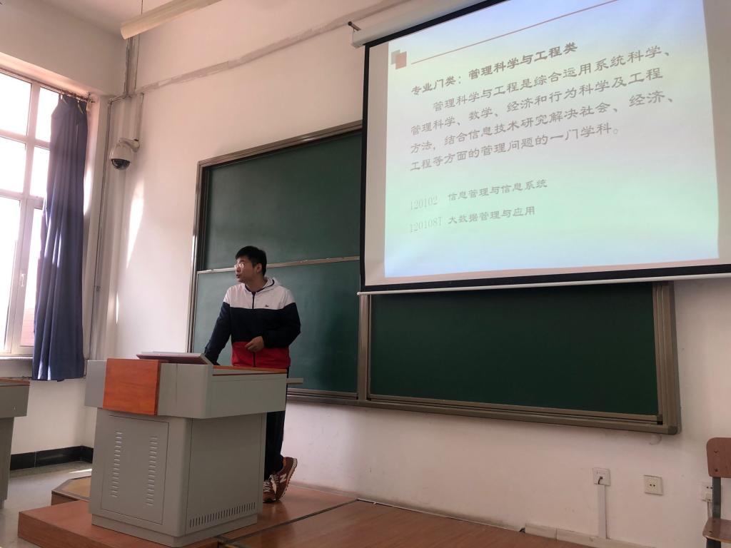 庞丽艳等信息系教师一一上台耐心介绍各自所讲授的专业课程,并提出就业可向公共事业管理、信息、计算机相关方向继续深造,在高等院校、政府部门及其他事业单位工作的前景也较为明朗。