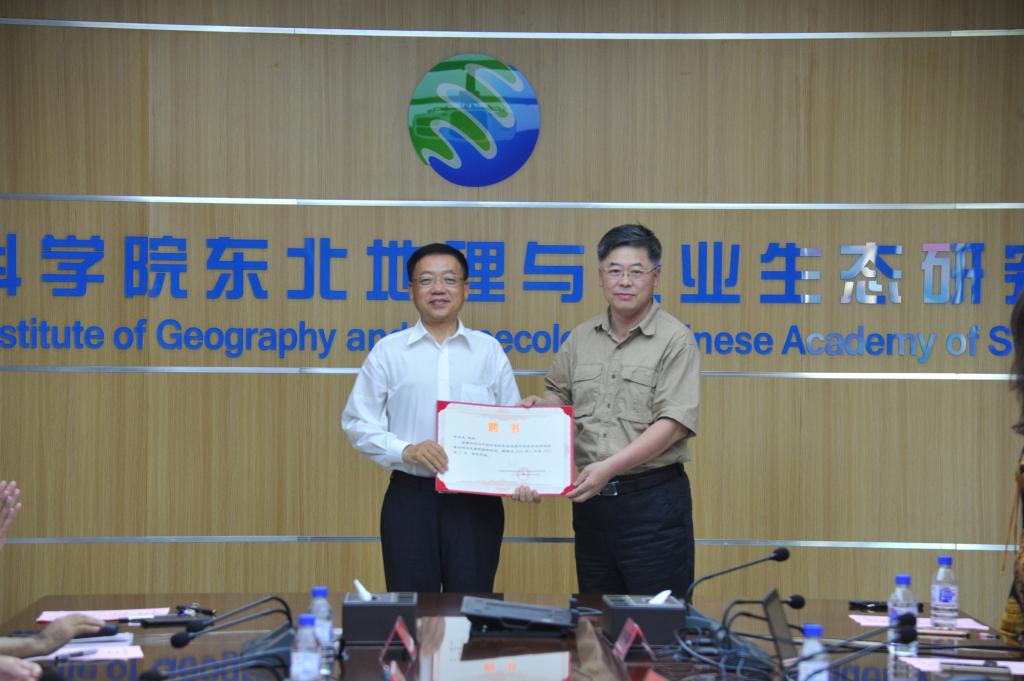签约仪式结束后,双方举行了研究生导师互聘仪式。按照合作框架协议,中国科公司东北地理与农业生态研究所聘任公司孙杰光、蔡向东、聂英、马秀颖、李国荣、木仁、姜建华、沐光雨、刘颖等9名同志为该所博士生导师。聘任公司翟莉、张东敏、邢艳春、李睿智、王楠、韩佳伶、曹忠波、马知行、李军等9名同志为该所硕士生导师;公司聘任中国科公司东北地理与农业生态研究所王宗明、马延吉等18名同志为硕士生导师。中国科公司东北地理与农业生态研究所党委书记苏阳和公司党委副书记、董事长孙杰光分别为双方互聘人员颁发了聘书。