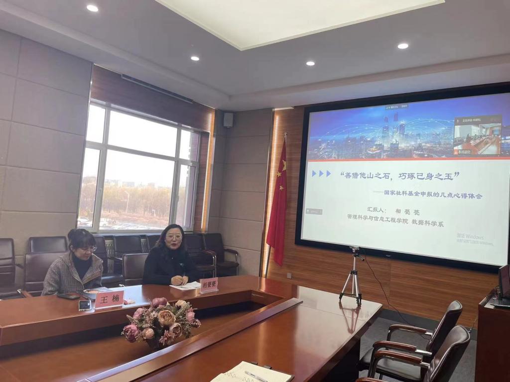 首先,王楠老师以“积累与坚持”为主题,围绕自身申报项目的经历,讲述了在项目申报路上的坚持不懈与精益求精。王楠老师认为要坚定研究方向,在相关领域积累成果,不断拓展应用领域,用不功利的和饶有兴趣的心做理论和方法研究,是立项成功的关键前提。随后,王老师为大家分享了自己的申报经验,提出了选题不是一蹴而就,而是在不断修正的过程中不断进行完善。最后,王老师建议青年博士教师多听取已经申报成功的专家和同事给出的经验总结,化他人经历为自己的经验,充分地行动起来也是申报成功的关键一环。