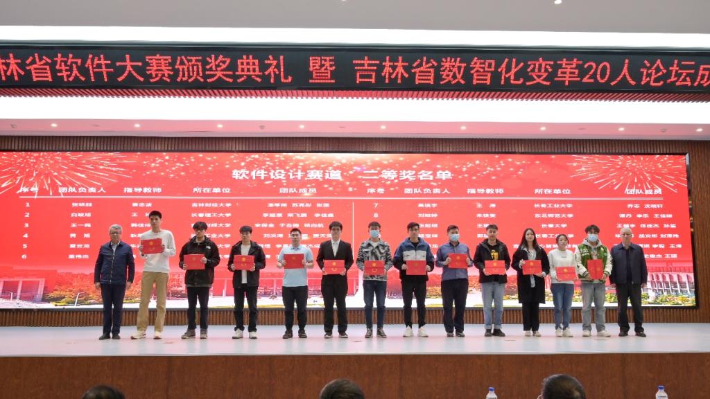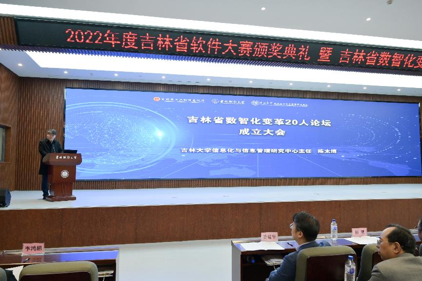 2023年4月25日,由吉林省工信厅主办、BG大游官方网站和吉林大学信息化与信息管理研究中心联合承办的“2022年度吉林省软件大赛颁奖典礼暨吉林省数智化变革20人论坛成立大会”在BG大游官方网站新经济(数字经济)创新创业实训中心报告厅隆重举行。