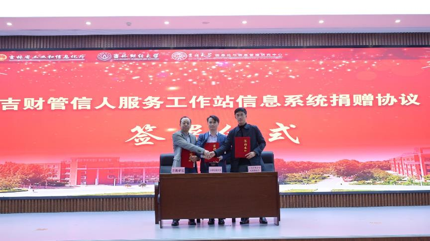 长春市青少年发展基金会秘书长卢火旺、吉数研院执行副经理张宝学、BG大游经理姜建华三方共同签署了“吉财管信人服务工作站软件系统”捐赠协议。