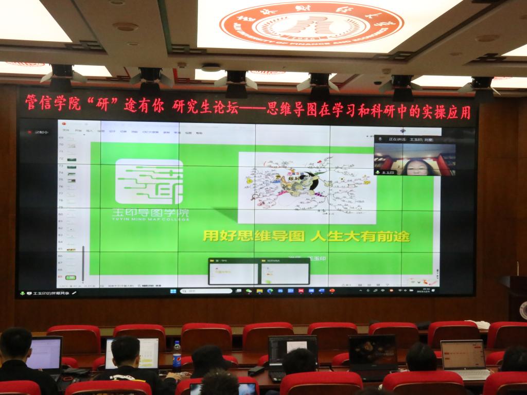 王玉印老师是思维导图创始人东尼·博赞先生的亲传弟子,玉印思维导图品牌创始人、英国博赞公司认证讲师、X-mind认证导图大师、第八届当当影响力作家、有书特聘思维导图专家、中国培训杂志封面人物、最强大脑思维导图导师,许多学员获得世界思维导图锦标赛冠军、亚军。王玉印老师从“破解思维导图普遍性应用误区”“构建思维导图结构化知识体系”“思维导图的广泛应用”三个方面为同学们深入分析了思维导图的意义,纠正了常见的认识误区,展示了她个人创建的关键词、发散思考、逻辑思考相结合的“倒三角理论”,带领现场同学一同实操绘制导图,现场对示例导图进行了逻辑结构订正,展示了思维导图在高效学习、读书笔记、解析文件、实事阅读、教学设计、课堂板书、汇报总结、创业大赛引导、比赛分析等等方面的广泛应用实例。并且展示了X-mind软件使用中色彩、图像、线条、文字处理的经验。同学在现场一同绘制操作。王玉印老师最后鼓励同学们在学习、生活的实践中积极运用思维导图的结构化思维,“还自己一个敞亮、清明的大脑”。