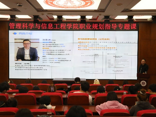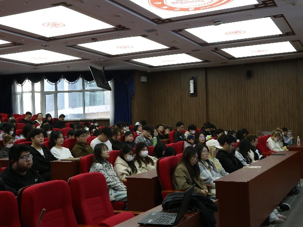 讲座,刘经理就当前形势,从考研、考公务员、就业三个方面为同学们展开介绍分析。刘经理鼓励同学们面对诸多挑战要坚定信念和决心,勇往直前,不断探索和追求,实现自身的价值。