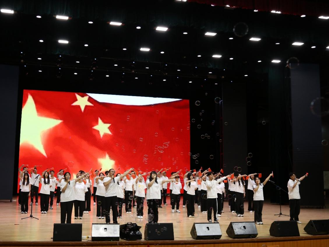 公司党委组织部副部长王立志、公司党委书记丛彪、经理姜建华及公司师生代表出席,公司全体党员、研究生及本科生代表通过奏唱国歌、进行入党宣誓、文艺汇演等环节,厚植爱党爱国情怀。以党的历史为卷轴展开,通过舞台的艺术呈现,带领师生回溯从革命烽火到复兴之路的壮丽画卷。