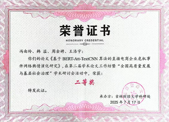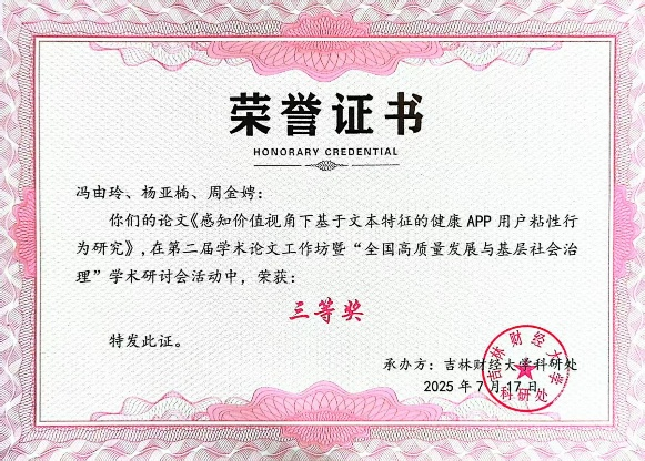 冯由玲教授科研团队参会并喜获佳绩,团队致力于大数据分析及管理决策、人工智能及应用领域的相关研究。此次会议,关于大数据分析在健康平台和企业管理决策领域的两篇学术论文在众多投稿中脱颖而出,在激烈评选中分别荣获二等奖和三等奖。冯由玲教授与其23级管理科学与工程专业研究生王浩宇分别进行论文宣讲,并与点评专家和学者进行深入学术交流。
