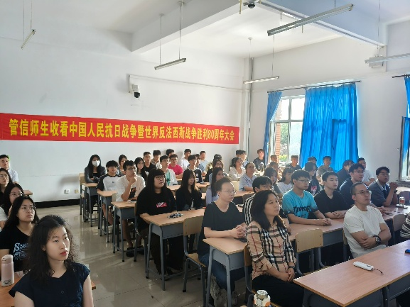 阅兵仪式集中展现了新时代人民军队的精神风貌与现代化建设成果。全体师生看后纷纷表示:通过这场直播我们不仅看见大国利剑的锋芒,也看见守护万家灯火的勋章;听见胜利号角的激昂高亢,也听见白鸽振翅的沙沙作响;我们读懂了“铭记抗战伟绩”的重量,更读懂了“赓续精神血脉”的担当。历史既承载过去,也启迪未来。师生们一致表示,将会把观看阅兵时激发的热血转化为实际行动。教师将为党育人、为国育才,学子则以技报国,勇攀科研高峰,用点滴实践续写强军新篇章,为全面推进强国建设贡献管信力量。