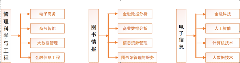 电子商务类:120801电子商务;管理科学与工程类:120102信息管理与信息系统、120108T大数据管理与应用、120110T计算金融。