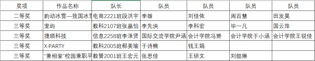 获奖名单: