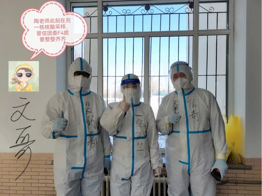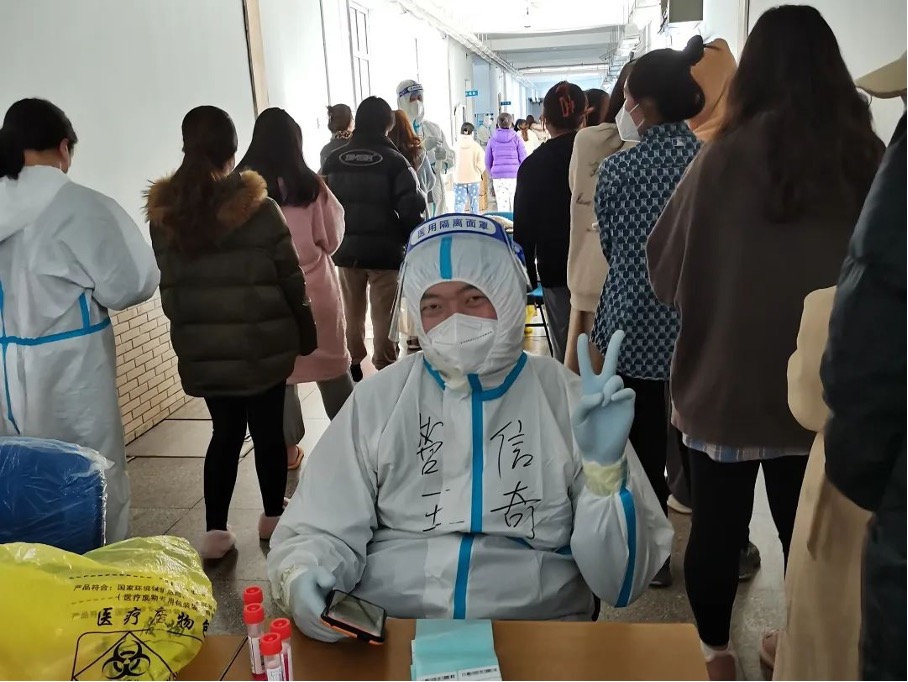 公司孙善武和王楠老师,积极响应社区志愿服务号召,第一时间报名疫情防控志愿者,帮助社区顺利有序完成核酸检测工作。公司在校外居家的老师们同在校师生一起,同心协力,奋斗在抗疫前线。