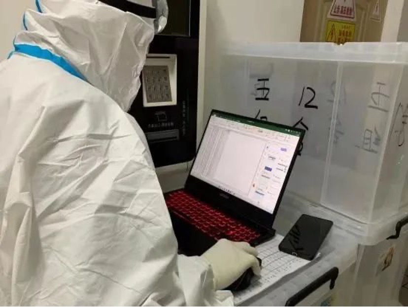 集团发布通知,紧急招募核酸采样登记志愿者。公司副经理姜建华老师积极响应公司抗疫防控部署要求,第一时间携带笔记本电脑赶到一线,进行核酸采集工作。