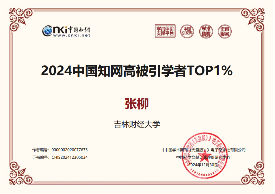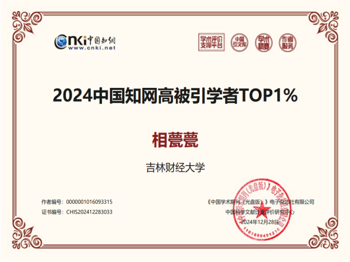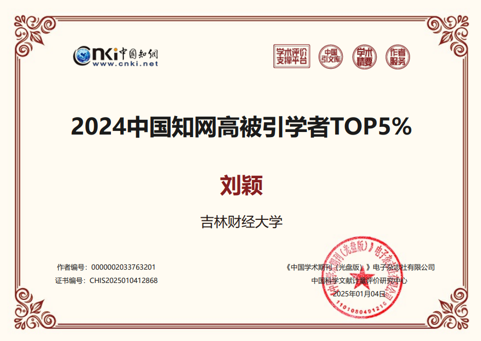 近日,中国知网中国科学文献计量评价研究中心公布“2024中国知网高被引学者”预发布名单,公司刘颖、张柳、相甍甍3名教师入选,其中“2024中国知网高被引学者Top1%”2位,“2024中国知网高被引学者Top5%”1位。这一荣誉不仅是对公司教师学术成就的肯定,也是对公司整体学术实力和研究水平的重要展示。