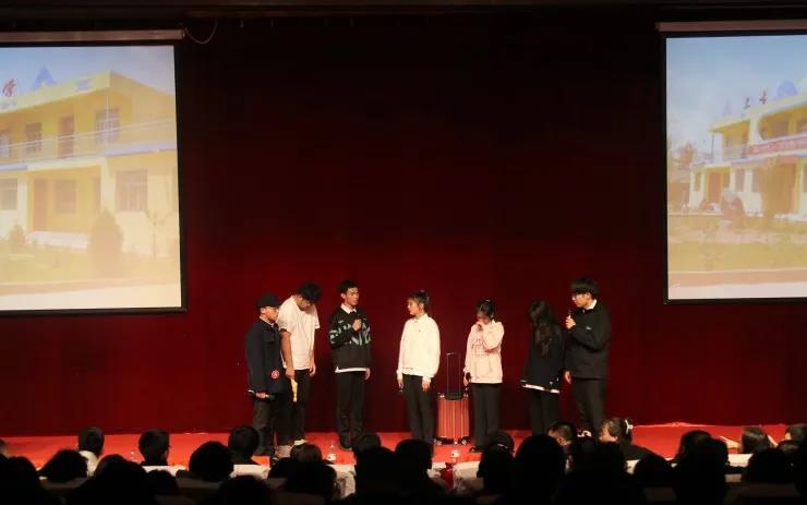 第一个节目是由郝洋帆、杨亮、罗婷婷、赵一带来的小品《 同学会 》,生动形象的演绎,使我们明白,只有启程,才会到达理想和目的地;只有拼搏,才会获得辉煌的成功;只有播种,才有收获;只有努力,才能获得他人的尊重。