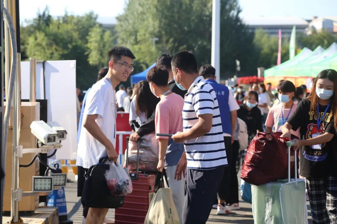 在迎新的过程中,有一名同学在搬运行李的过程中丢失了一件行李,我们的志愿者往返多次,最终在小推车上找到了他的行李。烈日炎炎下,虽然汗水浸湿了他们的衣衫,但他们的脸上始终洋溢着笑容。更有一些高年级的员工和刚到校的新生主动请缨,前来帮忙。不少志愿者,在帮助新生搬运完行李之后,还带领新生们到老员工活动中心做核酸检测,进行信息采集,带领他们熟悉校园。正是因为志愿者们的辛勤付出,迎新工作才得以顺利开展。