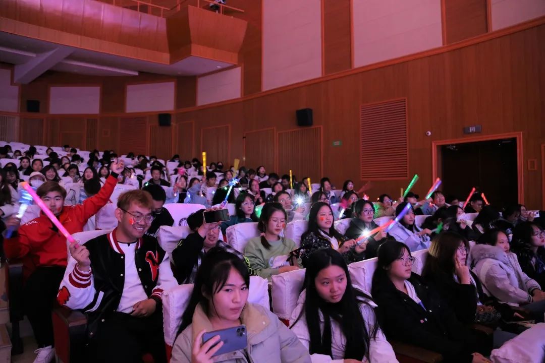 现场观众纷纷为班级同学呐喊加油,并且高举选手们专属的灯牌和荧光棒,他们给了选手们莫大的鼓励。选手们都拿出了自己最强的实力,力争上游,争相开放,赛况愈发激烈。
