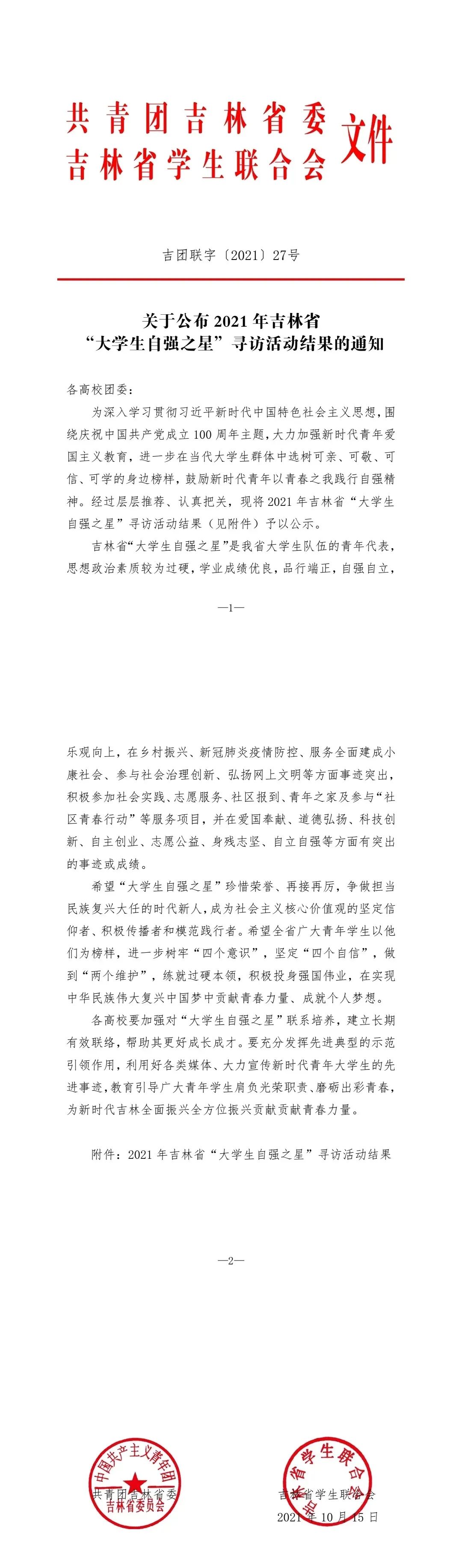 近日,由共青团吉林省委、吉林省员工联合会共同组织开展的2021年度吉林省“老员工自强之星”寻访活动结果揭晓。公司BG大游数据科学与大数据技术1903班张鑫同学,经高校推荐、省级评审等环节,从众多评选对象中脱颖而出,获评吉林省“老员工自强之星”荣誉称号。