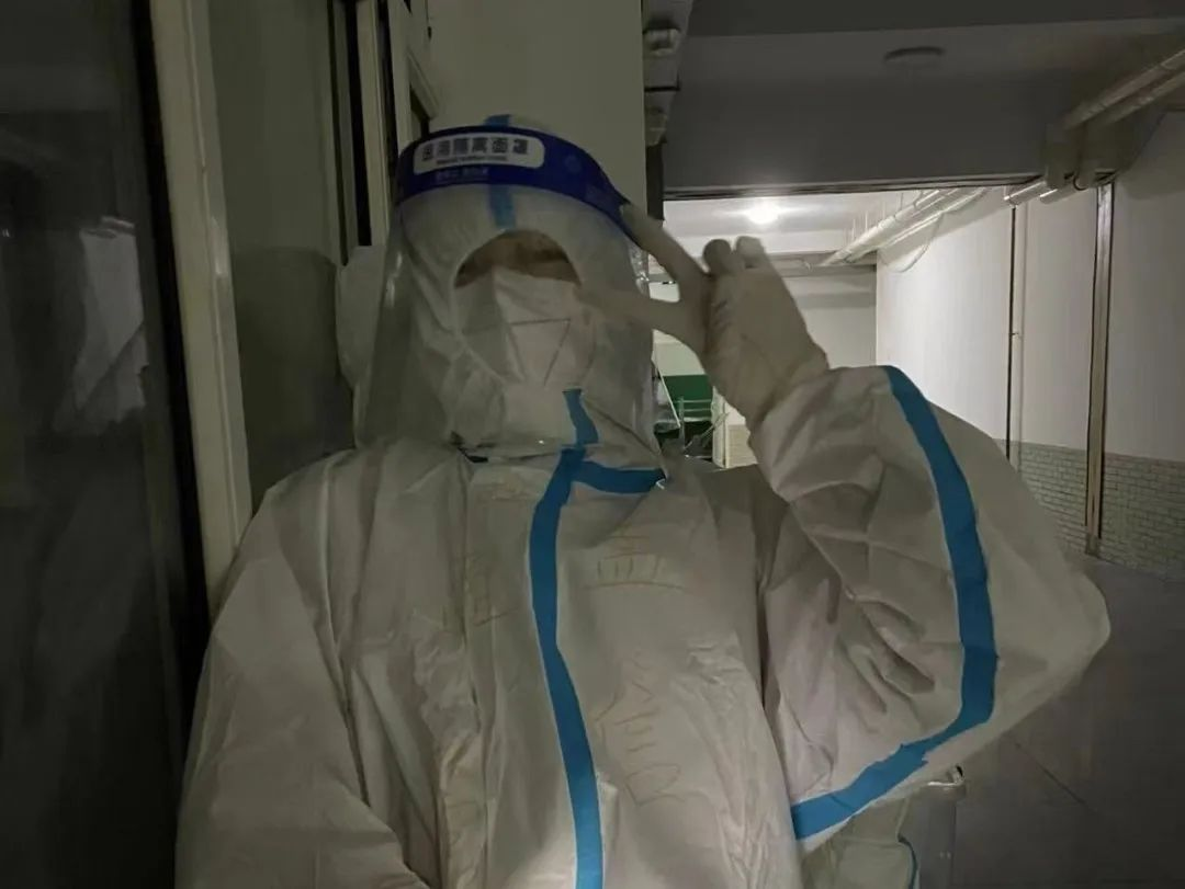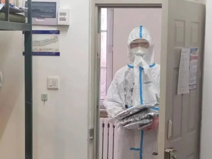 作为第一批志愿者,我深知自己的责任与使命,每天的任务是帮助同学完成核酸自测,发放当天的餐食和抗疫物资,同时也会组织核酸队伍。犹记得有一次公司紧急通知核酸检测,由于那天情况特殊我们从七名志愿者变成了四名志愿者,这无疑增加了我们任务量,我们从晚上八点开始穿上防护服,直到第二天凌晨一点半,防护服十分闷热,不能上厕所,不能喝水,整个人累到虚脱,躺在地上,但是当同学们为我们送来巧克力和水补充体力时,我感觉这一切都是值得的。