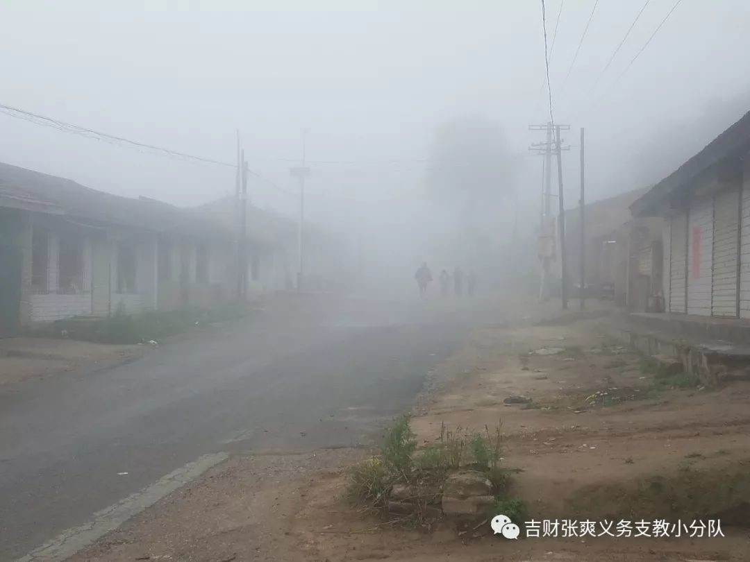 7月20日中午外面突然下起了大暴雨,一个小时后全村竟起了大雾,大雾笼罩着泥泞的土路,让孩子们的上学路变得更加艰难,但是这些并没有阻止孩子们对知识的渴望,他们在路上三两作伴、互相扶持来到了教室,在充斥着大雾的街道上又响起了唐诗宋词、英语课文的诵读声。