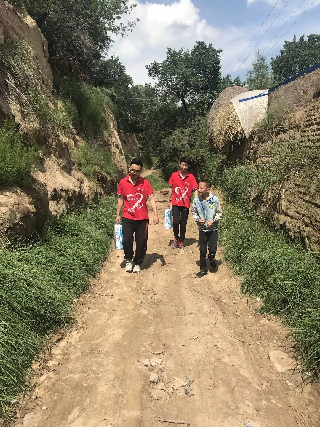7月22日下午我们在小员工刘博的带领下迎着阳光走了近五个小时的山路,来到班级资助员工王丽梅和杨瑞娜的家中,探望她们并送去牛奶。