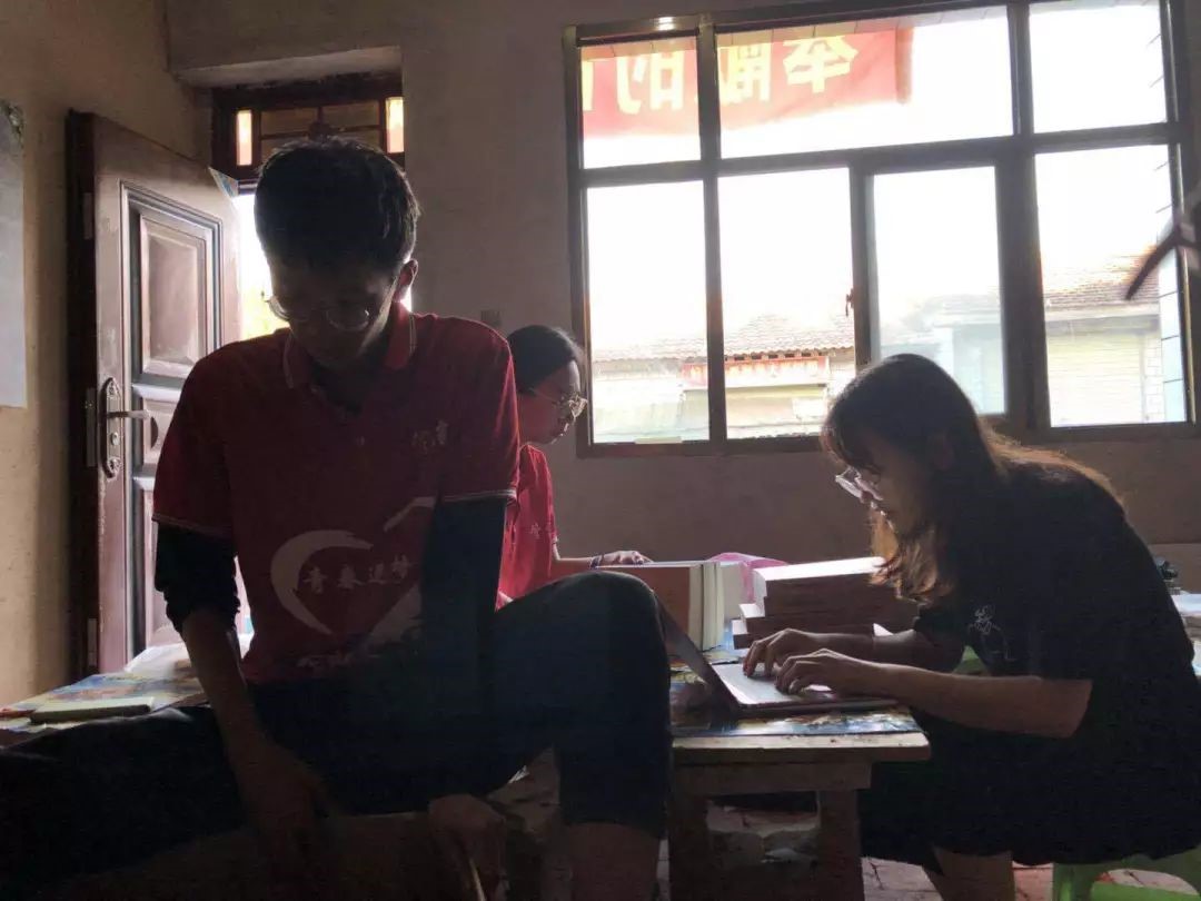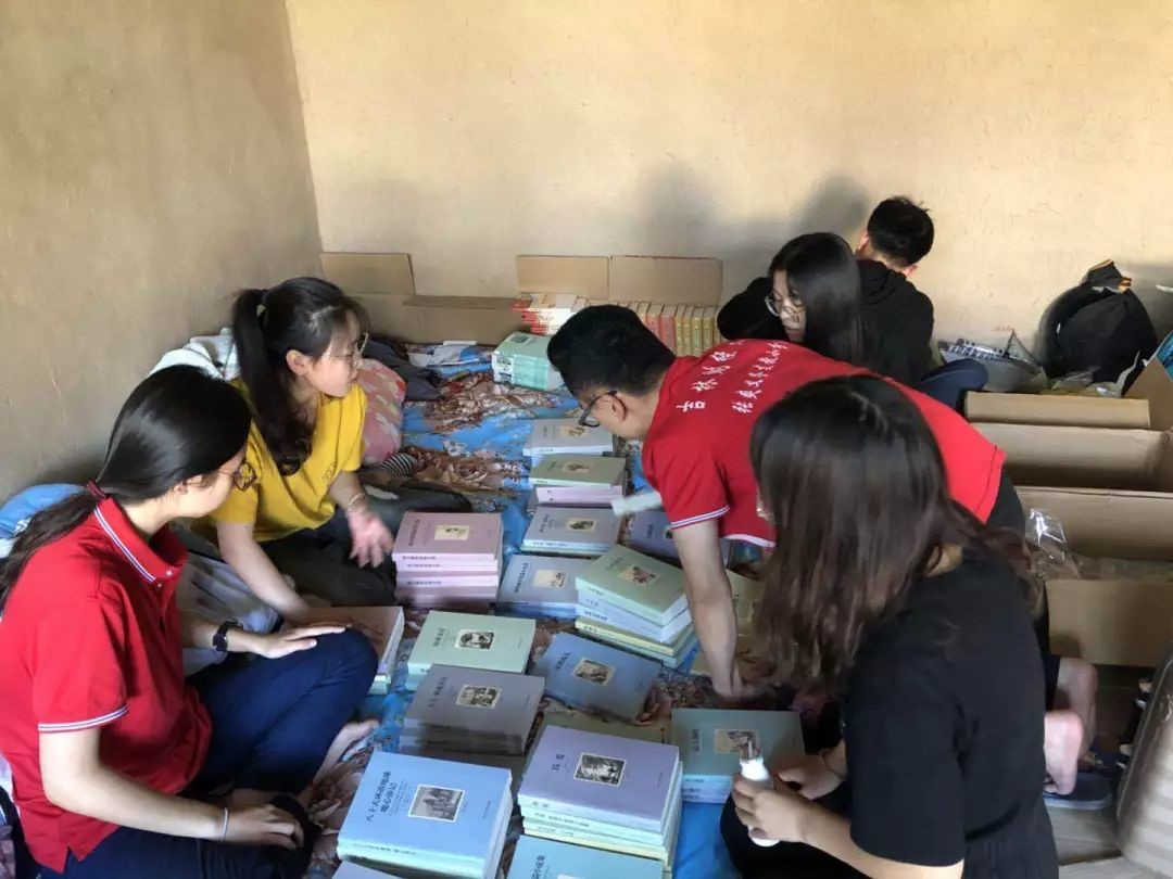 7.21下午,由电子商务0705班刘英浩学长捐赠的图书送达王家店,为了方便图书管理,方便借阅,延长图书使用寿命,小分队成员们决定对这165本图书进行分类整理,编号贴标签,输入电脑建档,标注图书使用明细。