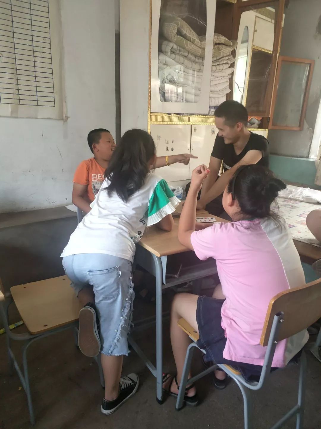 来到大湾村的第一时间,为了让孩子们有一个良好的学习环境,我并没有坐下休息,先整理凌乱的书架,打扫了整个房子的卫生。在这闷热的房间里三个人都热得满头大汗。在每天上课前,我们都会提前制定好每天的教学计划,使得孩子们有更加充实的课堂时间。针对不同年级的小孩子,我们采取不同教学方法,对低年级的同学,我们教会他们对语文以及英语字典的使用。高年级同学主要是对学习思想的引导。在课余时间我们与小孩子们一起跳绳打羽毛球。吃完晚饭后,一起在村里一起散步。为了更加了解小孩的学习情况,我们积极与员工家长沟通,并与家长共同督促小孩子们学习。一周的支教时间就这样结束,我们忘不了与孩子们一起度过的时间,忘不了每天精心准备的教学计划,忘不了孩子们提出的每个问题,忘不了热到难以入睡的每个夜晚夜晚,忘不了每个被苍蝇叫醒的早晨,忘不了……