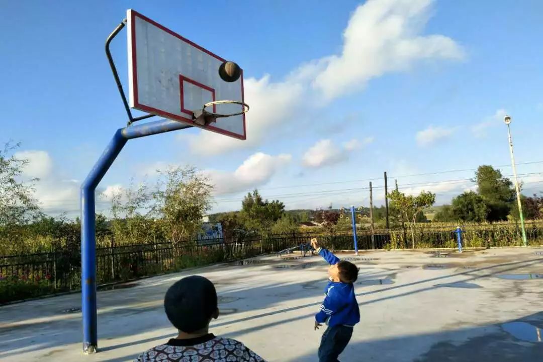 课余时间,志愿者们也和孩子们在篮球场开心的玩耍,希望这一刻的开心能永远停留他们的记忆里。