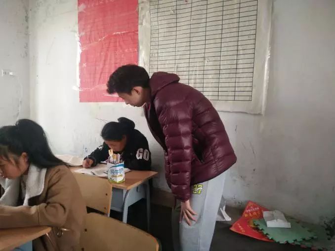 他们都不是 第一次来支教的,所以跟这里的孩子都很熟悉,孩子们虽然贪玩,却也知道自己还有要完成的作业要做,遇到不会的问题他们也会积极的解答,奶奶非常的热心,一面问他们冷不冷一面不断地叮嘱他们有什么事一定要说。这里的桌椅很破旧,有的还掉了几个螺丝,但是这并没有阻挡孩子们学习的心。