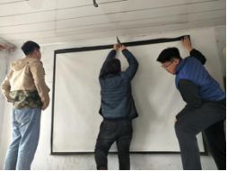 这日的支教行动与以往有些不同,他们来的时候为这些孩子带来电影的幕布和投影仪。这些支教老师在教室里弄起了投影仪。上课的时候老师也用投影仪讲课,孩子们也听得认真。下课的时候,同学们都看了一场电影,也许对于孩子们来说现场看电影是他们梦中才会发生的事。