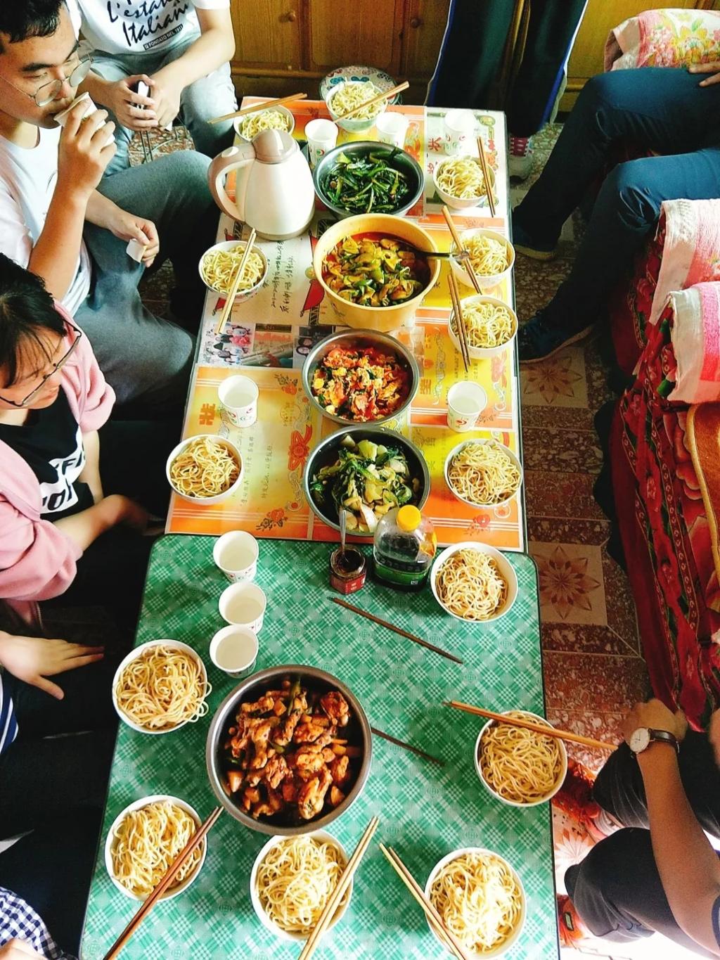 收拾整理完成之后,蔡家三姐弟先带着我们去她家吃晚饭,叔叔阿姨非常热情地招待了我们。蔡家妈妈给我们准备了大碗、喷香的面条,还有非常美味的炒菜,大家狼吞虎咽,吃得格外幸福。饭后,贾老师根据蔡家姐弟各自的情况分别给出了学习的经验和沟通的技巧。