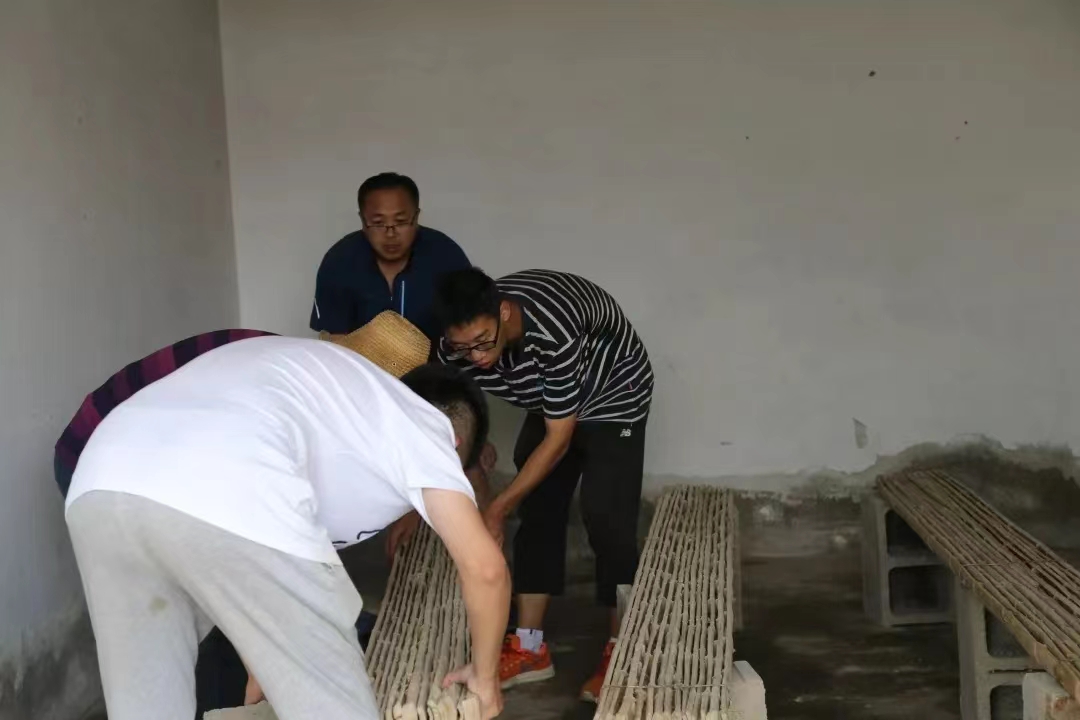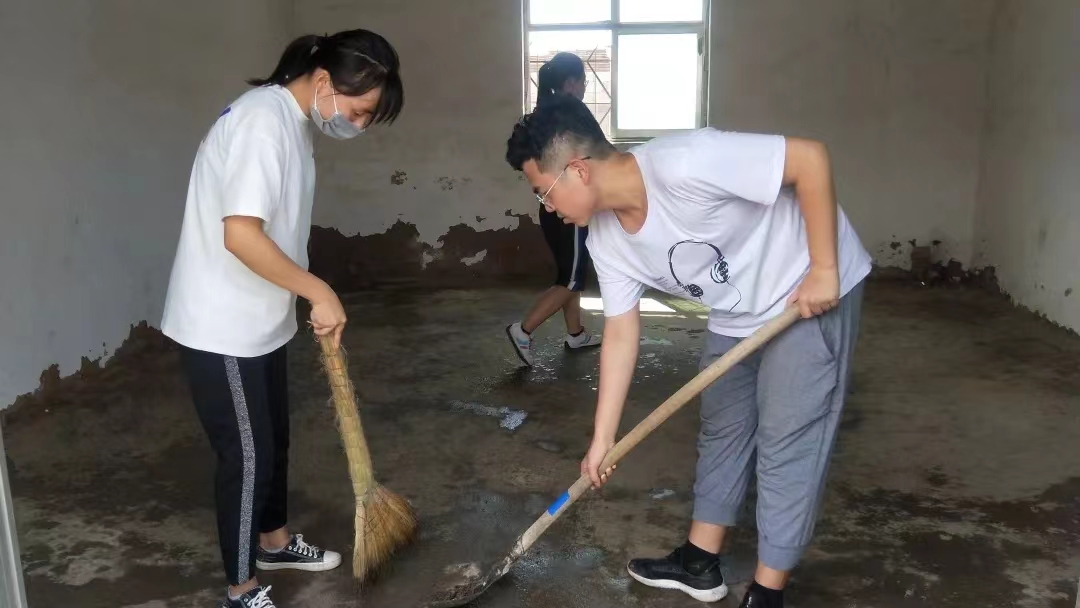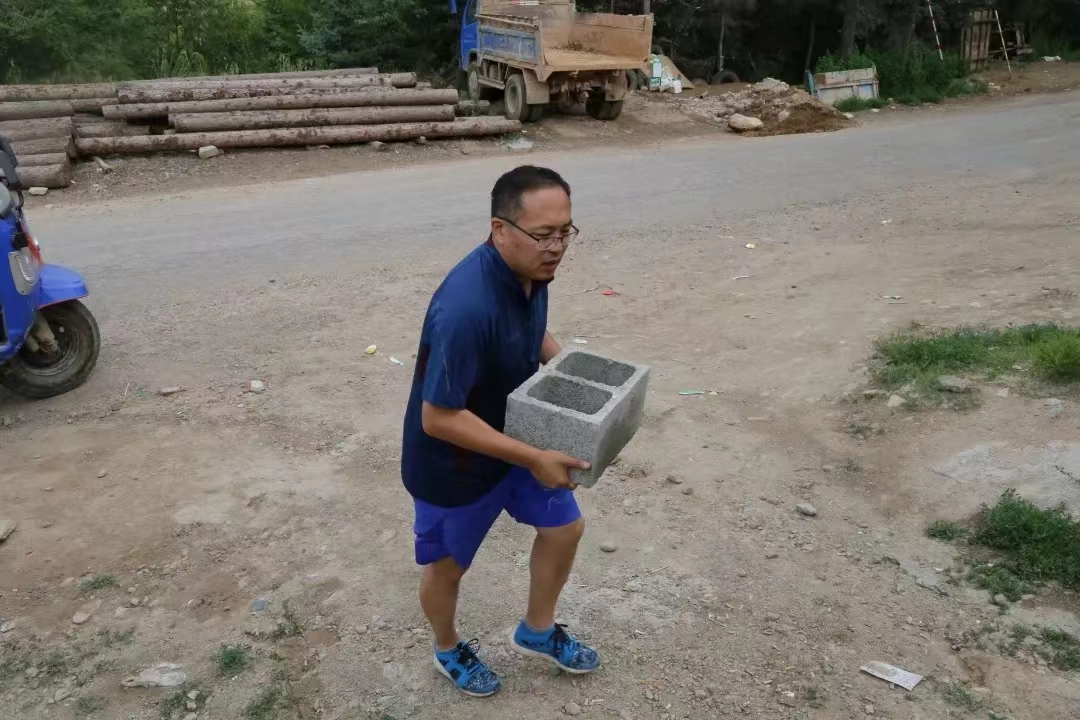 住处收拾好之后,我们开始打扫我们的两个教室。教室布满灰尘和蜘蛛网,同学们克服平日的恐惧,将教室打扫干净。村民们驱车为我们送来了空心砖,还送来了黑板和搭建桌子的木板。一块空心砖达到了五十多斤,贾老师和同学们不畏辛苦搬运着空心砖和木板,一起为孩子们筑起希望的教室。