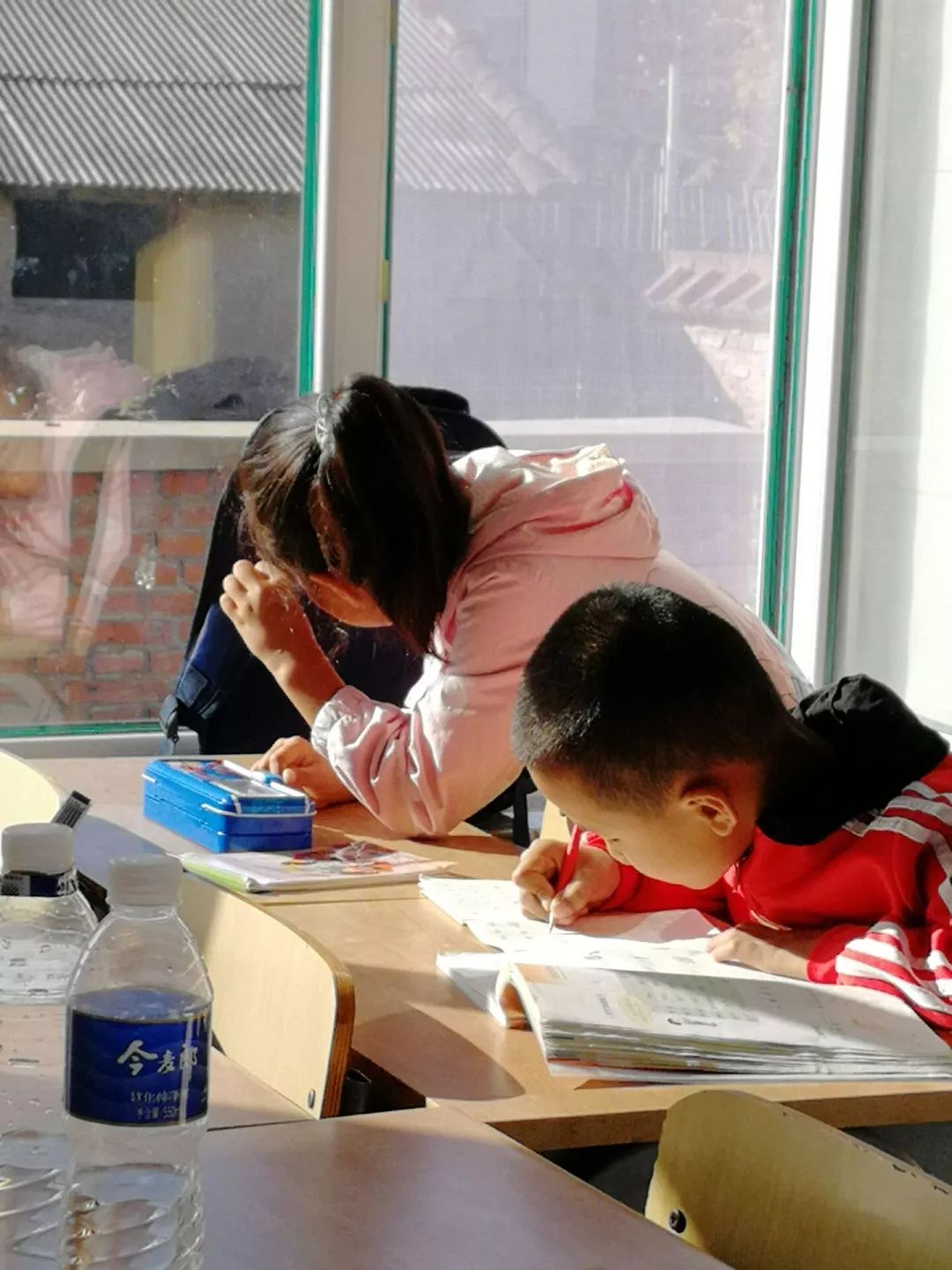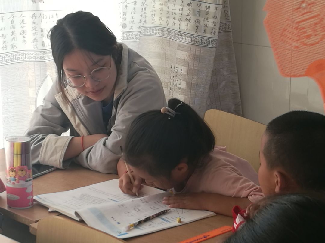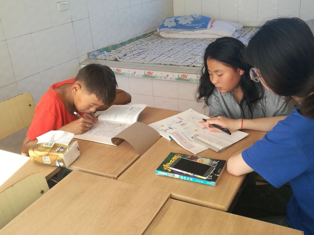 三天假期,有的孩子第一天就完成了所有的作业,但还是依旧每天报道,问老师不懂得问题和下一课的知识;尽管外面下了一些雨,但还是有很多孩子冒着雨来学习;孩子们的努力我们都看在眼里。比如徐乐同学,在完成作业后,第二天主动要求老师给她讲方程,比如赵佳怡同学,年龄比较小,写作业速度比较慢,但还是一笔一划的完成了作业,而且字迹非常漂亮,完全看不出只是一个二年级的孩子的字……尽管 有些孩子非常顽皮,总想着玩,废了老师们不少的心,但是,这些都是孩子们最真实的一面,而改变这些不好的习惯,也是我们这些吉财学子去支教的目的。