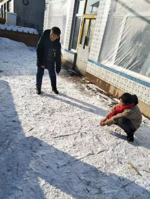 学习是要劳逸结合的,那么艰难的“作业大战”就告一段落吧。孩子们拉着志愿者的手嚷嚷着要玩“跳房子”,“三个字”,冰雪封冻的街道显然已经不适合孩子们玩耍了,而支教小屋前的空地自然而然的成为了新的乐园。男孩女孩都笑作一团,他们的快乐永远不会被这寒冷的天气夺去。