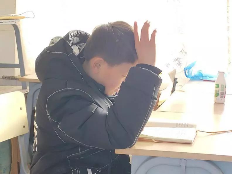 屋子里的孩子正在认真的完成寒假作业,阳光洒在靠近窗户的桌子上,照亮了正被男孩仔细翻阅的笔记本,被寒风冻粗的小手高举着向老师发出疑问。最可爱的是桌子上的AD钙,大概是温柔的妈妈放进书包的。