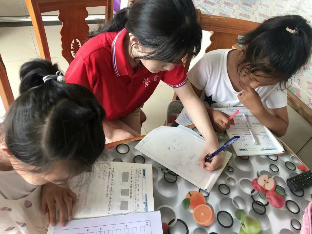 于海晗同学为邻居家的小朋友辅导功课,小女孩十分认真的完成老师布置的作业。