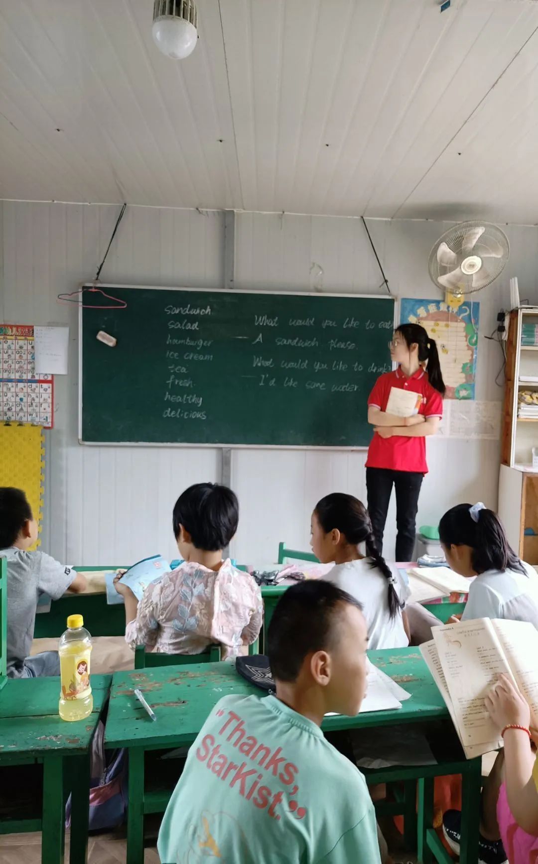乡村教育在英语这一学科上存在很大的弊端,同学们都只会写单词而不会听不会读,志愿者汤震的到来教会了孩子们大声朗读英语。盛夏的炎热并没有击退同学们的学习热情,大家在一起学习反而更有动力。这里的孩子们十分温暖。在下课间隙,带着志愿者老师一起滑滑梯。孩子们的快乐很简单。