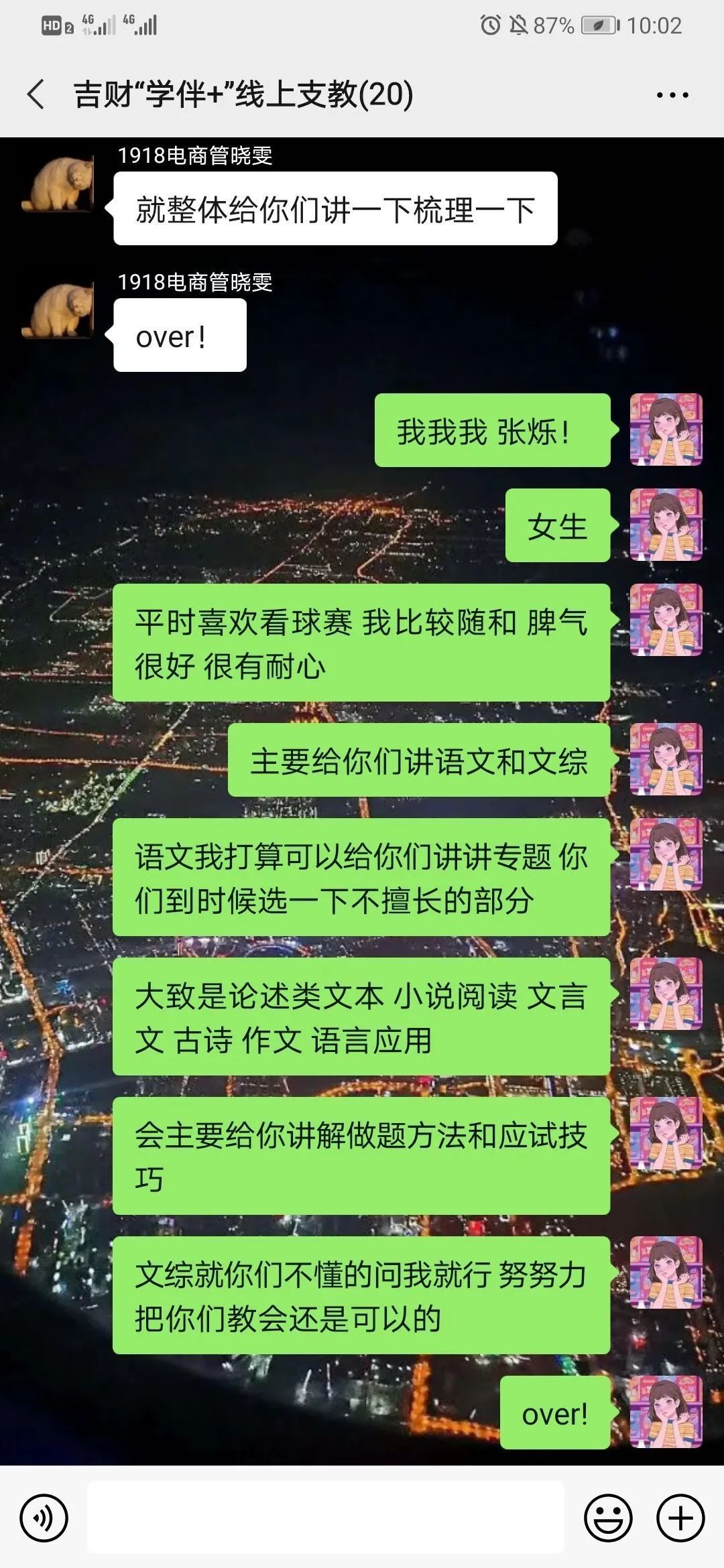 此次返乡支教活动,管晓雯,张烁,乔运华三位同学选择了线上支教。他们通过线上互动的方式,给同学们答疑解惑,巩固学习。答疑群建好之后,三位同学进行了简单的自我介绍以及各自擅长的领域,接下来,答疑就开始啦!