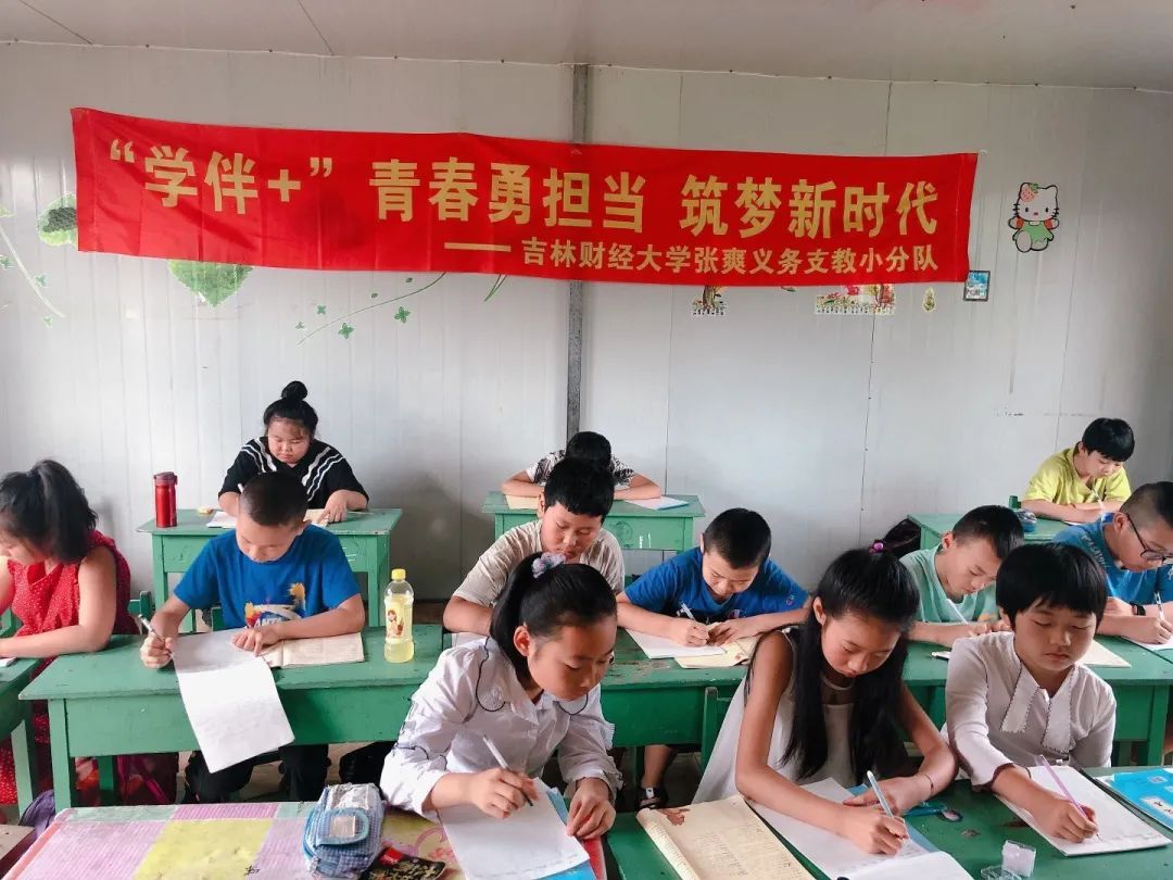 支教的这些天里,我真心觉得特别快乐。课下我带你们玩耍,与你们闲聊,给你们讲大学里的故事。是你们用水彩笔,为我无聊的假期生活涂上了童真的颜色;是你们背着小书包,把夏天的快乐的都分享给我。或许多年以后,你我都会想起这一年夏天属于我们最美好的回忆。我还会记得那个下课最淘气,但是学习很认真的程廷岩;我会记得写作业很认真,热爱篮球的刘伟祺;我会记得苗诗淇带我去看的小鸟窝;我会记得壮壮的隋昊伦每天下课都在秋千后面推我们荡秋千;我会记得陈秋同用作业本给我做的手环,上面歪歪扭扭的写着我的名字;我会记得每天都会抱抱我的潘琳……我永远都会记得二十岁的夏天我们挤在小小的教室里,相互学习,共同成长。你们赠予我的糖是甜甜的,你们的笑也甜甜的,吹过的夏风也是甜甜的!你们真挚的眼神,甜甜的笑脸,温柔了我整个夏天!