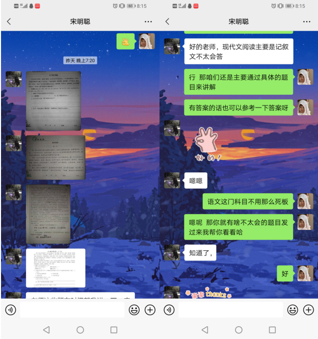 刚开始进行辅导不知道从哪里入手,因为自己辅导的是语文,可能不像理科那些学科一样好讲解一些,所以我就先问一下两个小朋友的弱项是哪些,她们告诉我是文言文翻译以及记叙文阅读。所以我主要采用以题的形式来给她们进行讲解,她们找了两道文言文的题目,我就先让她们自己先翻译一下文言文里面自己不懂的地方,然后我再通篇翻译,通假字以及一些句型,在讲解的过程中同时也先让她们自己也进行翻译,这样你能让她们能够自己更好的理解。然后记叙文阅读方面给她们讲解了一些答题技巧以及答题规范,帮助她们更好的理解阅读。