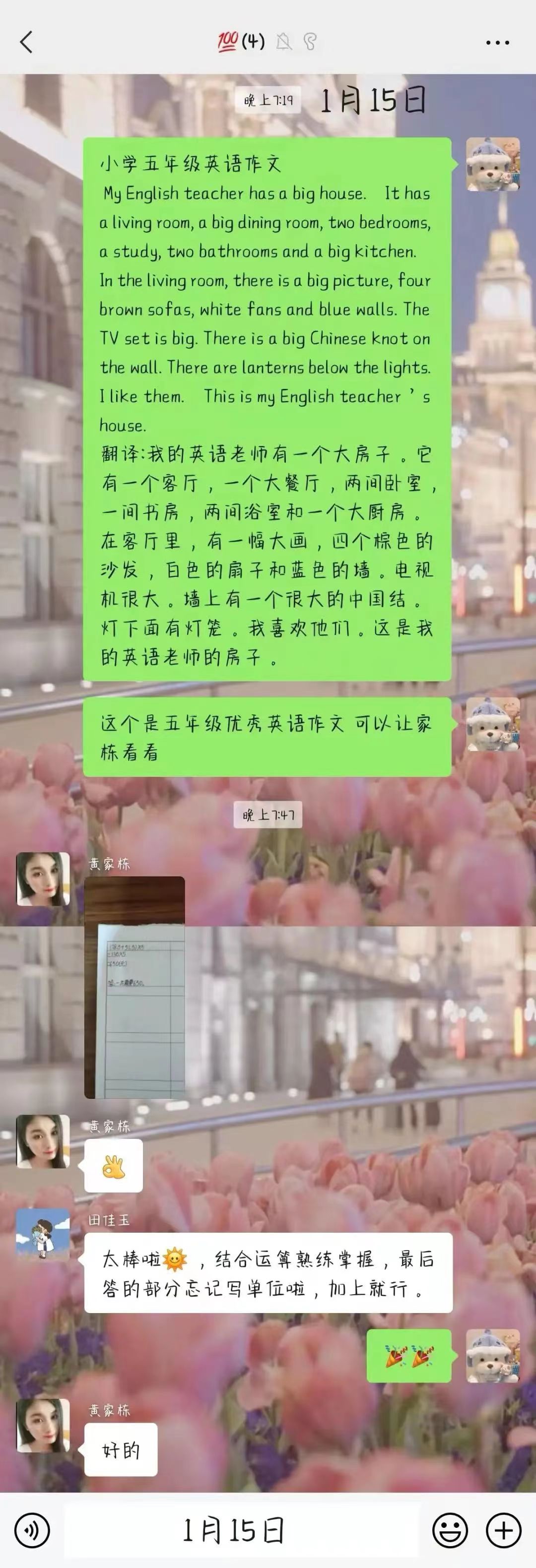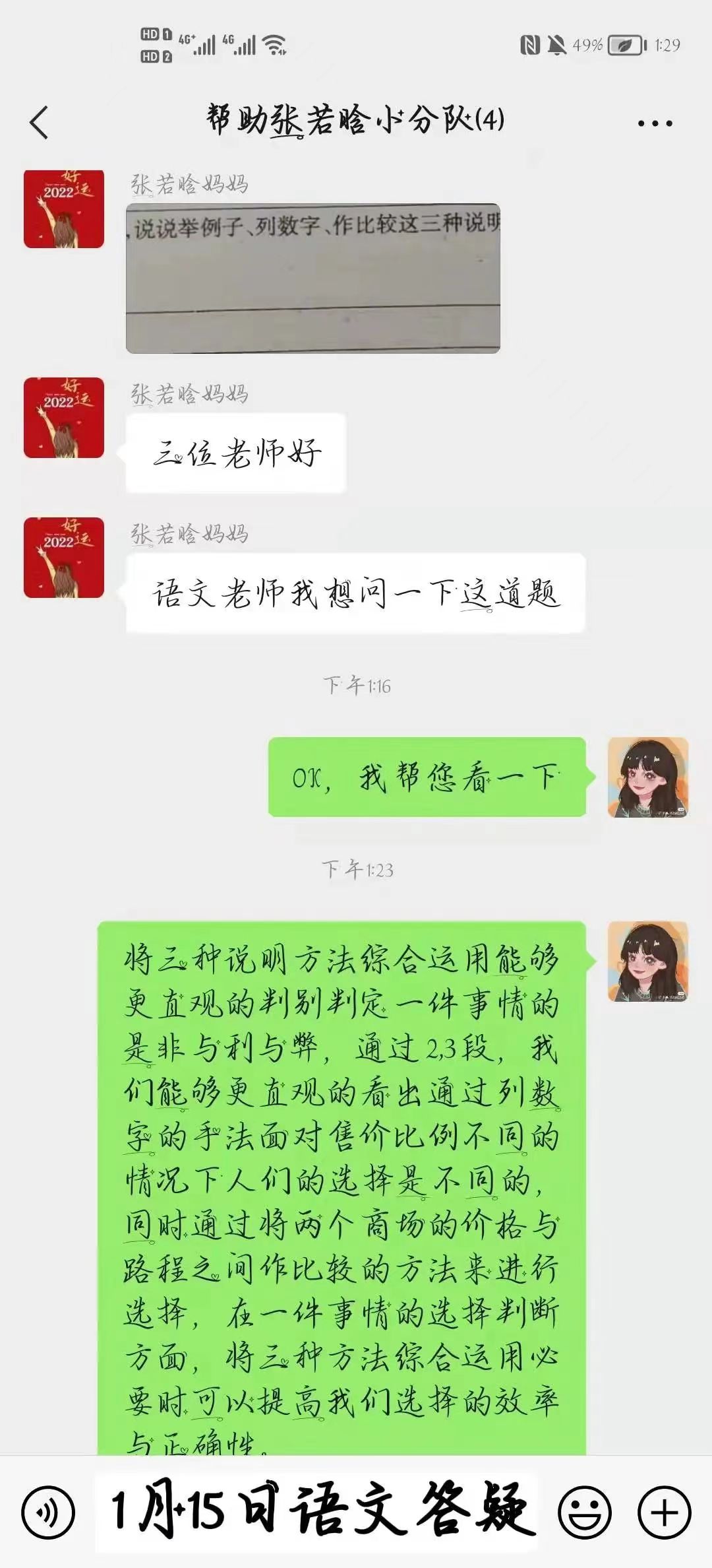 这次的学伴+活动我负责辅导的是一名一年级的员工。发布名单后我先给孩子妈妈打了电话沟通学习情况,然后我请孩子妈妈每天把做作业中遇到的问题拍照发到群里,再为其进行解答。对其文言文难点做出了详细的解答,针对数学问题,建立腾讯会议录制解题过程,为期提供更加清晰的方法与思路。虽然辅导的时间有限,一个人的力量也有限,但是我相信聚少成多,聚沙成塔。我们真心付出,不求回报的这份志愿者精神也会在孩子心中种下奉献的种子,未来一定会越来越好!