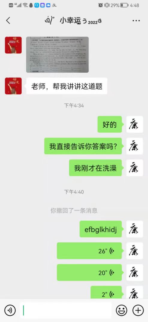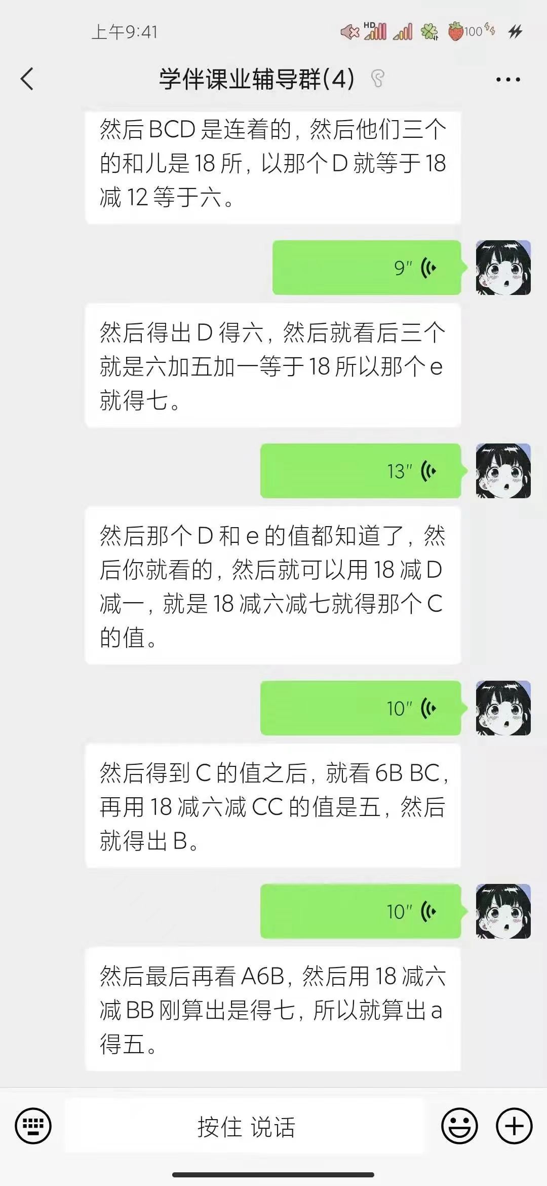 这学期的“学伴+”活动开始了,我辅导的小孩子是一年级的,同时也为他家中的哥哥姐姐解答问题。孩子们都是小学初中高中的,他们都非常热情的求教,我也尽力做到有问必答。每天和小朋友通过微信聊天、视频电话沟通,虽然我们不能和彼此相见,但是我们都很珍惜一起进步的时光。现在,我的辅导工作才刚刚开始,在接下来的日子里,我一定会保持热情,一如既往的做下去。