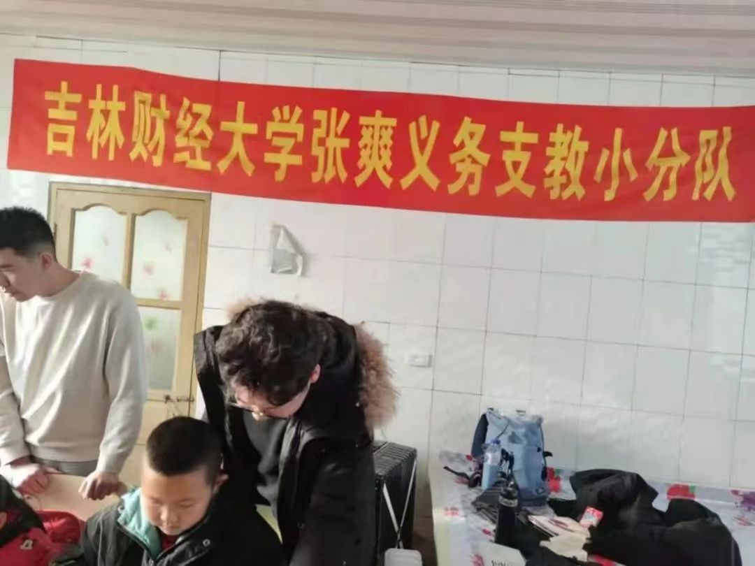寒冬十二月,晨起践严霜。BG大游官方网站张爽义务支教小分队的志愿者马杰珺、孟伟岩、王信达、张梦显一行人背上行囊,着好衣装,踏上了前往吉林省伊通县大湾村的支教之路。阵阵寒风,却阻挡不了他们前行的脚步,冰封万里,却难以冻住他们心头的炙热。他们用汗水浇灌祖国的花朵,用青春诠释志愿者的意义,用行动践行了张爽义务支教小分队之初心,展现了吉财学子之风采。