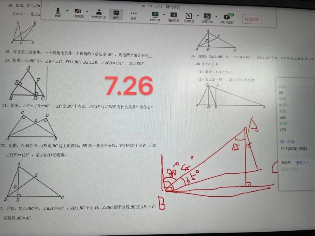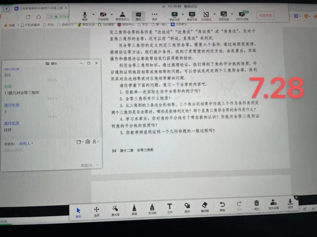 正式上课前,我首先向家长咨询了小朋友上学期的期末成绩,了解小朋友大致的数学基 础,最终敲定每天早上八点钟上课,一天两节课。事实上,线上支教与线下支教有很大不同。上课时,我们看不见彼此的面容,大多数情况下我也不知道屏幕前的小朋友在做什么。因此,在教学过程中我不断地改进自己的教学方法,以确保课上的知识点能被小朋友完全理解。线上支教的日子里,我每天早起备课,课下批改作业,也会经常看网课,学习专业教师的讲课技巧;小朋友也很认真,每天都会提前进入课堂,从未迟到,课上会积极回答问题,也会向我提出疑问的点,他的认真也给予了我无限的动力,让我觉得自己不是一个人在战斗。线上支教已经结束,但每天上课的场景却历历在目,感动也将永驻心间。