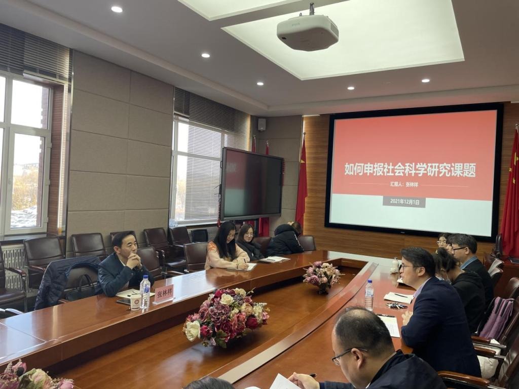 2021年12月1日,吉林省社科规划办副主任张林祥教授应邀来BG大游作《如何申报社会科学研究课题》专题讲座。讲座由姜建华副经理主持,韩佳伶副经理、孙铁铮副经理、部分系主任、副主任等团队建设骨干以及公司新晋青年教师参加了本次讲座。首先,张林祥教授对科学研究和社会科学研究两个概念进行了深入分析。其次,张林祥教授结合我省社科基金项目,对如何申报社会科学研究课题进行了详细的汇报分享。张教授还从如...